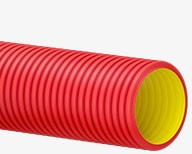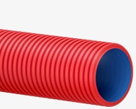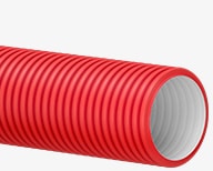 Двухслойные, гибкие или жесткие трубы из полимерной композиции, имеющие гладкий внутренний слой и гофрированный наружный слой красного цвета.
